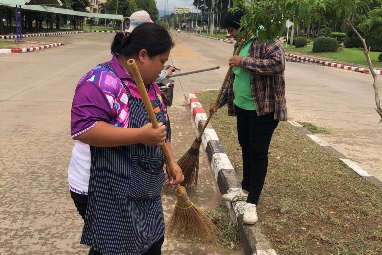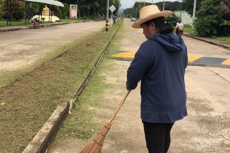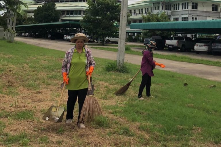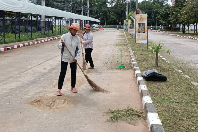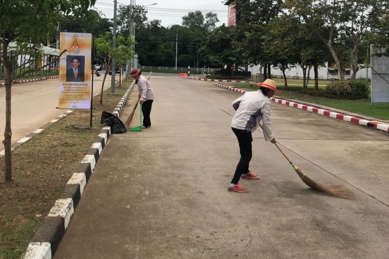 - เก็บกวาดบริเวณถนนสายหลักภายในมหาวิทยาลัย เพื่อรักษาความสะอาดและสร้างภาพลักษณ์ที่ดีของสถาบัน