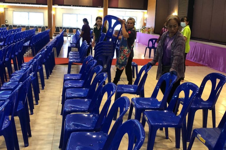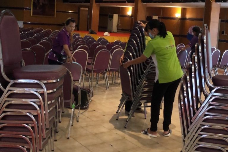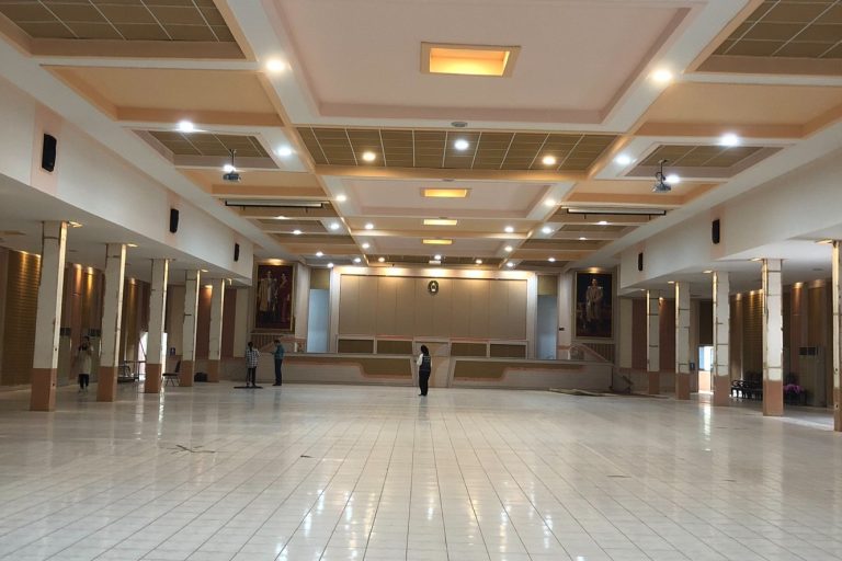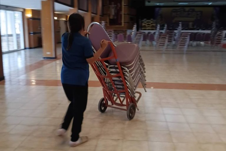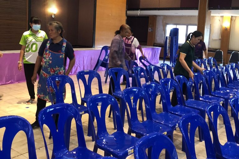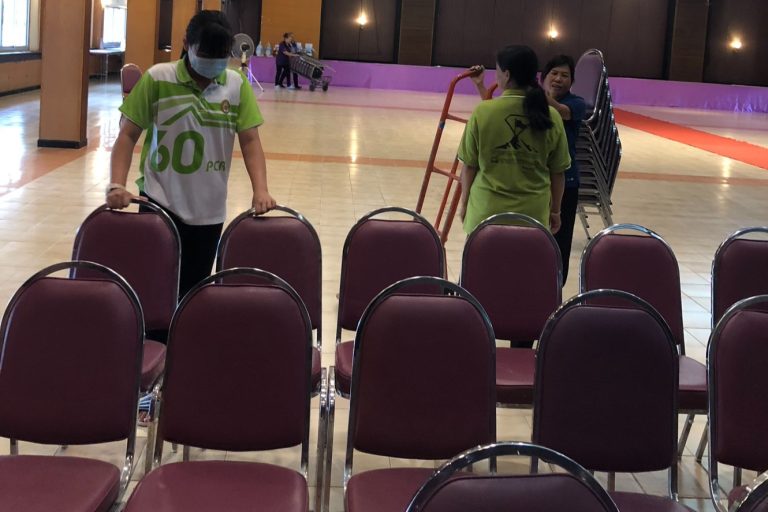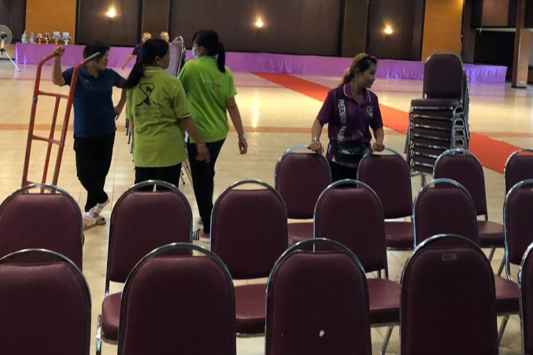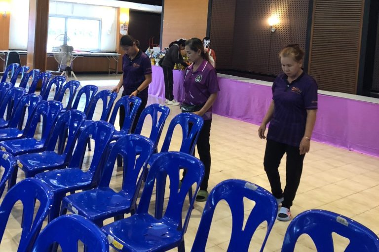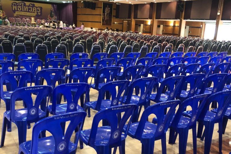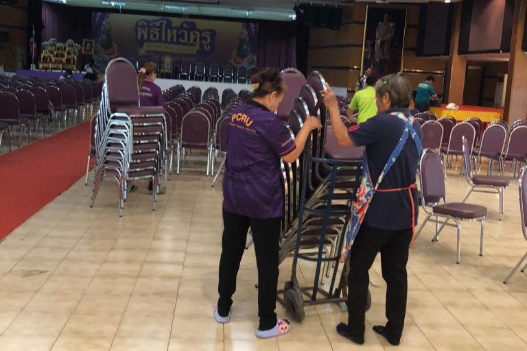 - จัดเก้าอี้ภายในหอประชุมประกายเพชร เพื่อรองรับการจัดกิจกรรมพิธีไหว้ครูของนักศึกษา