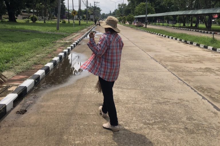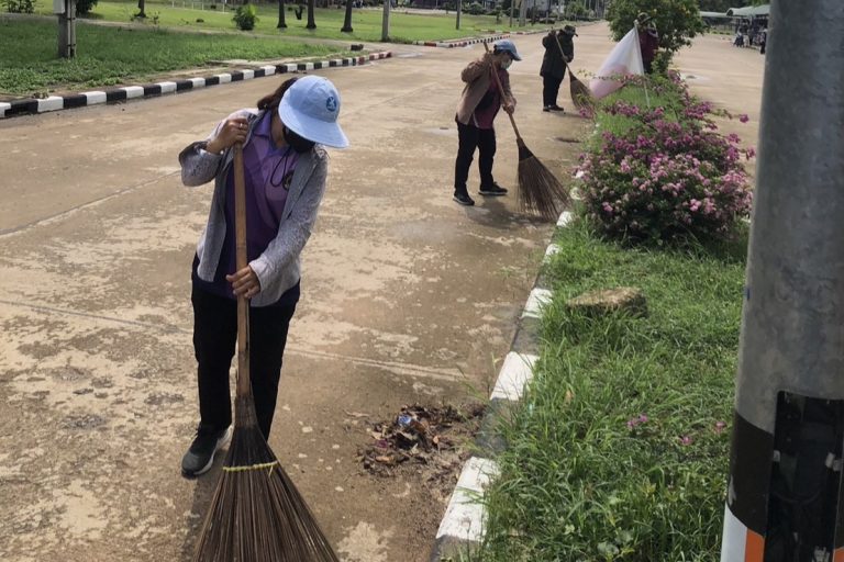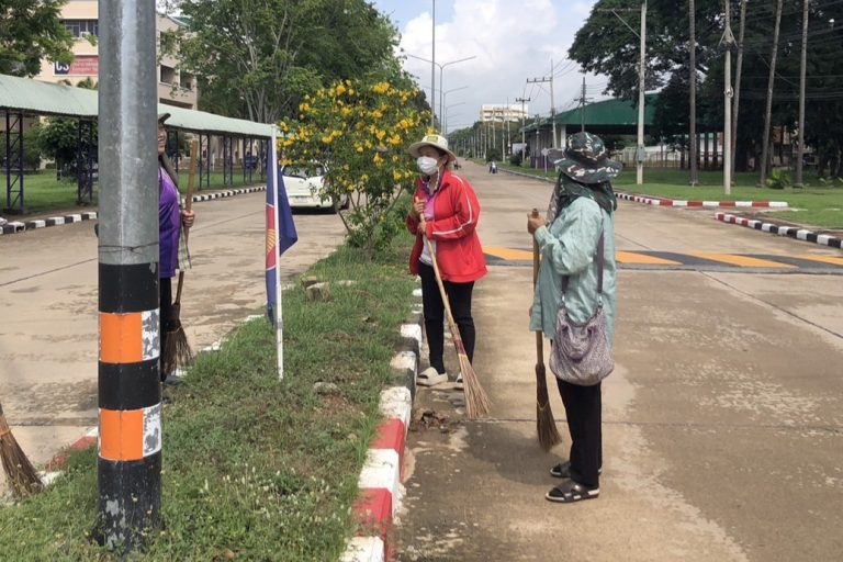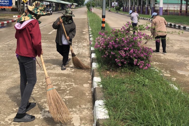 ชุดพัฒนามหาวิทยาลัยร่วมดำเนินกิจกรรมทำความสะอาดถนนสายหลักและสายรองภายในมหาวิทยาลัย