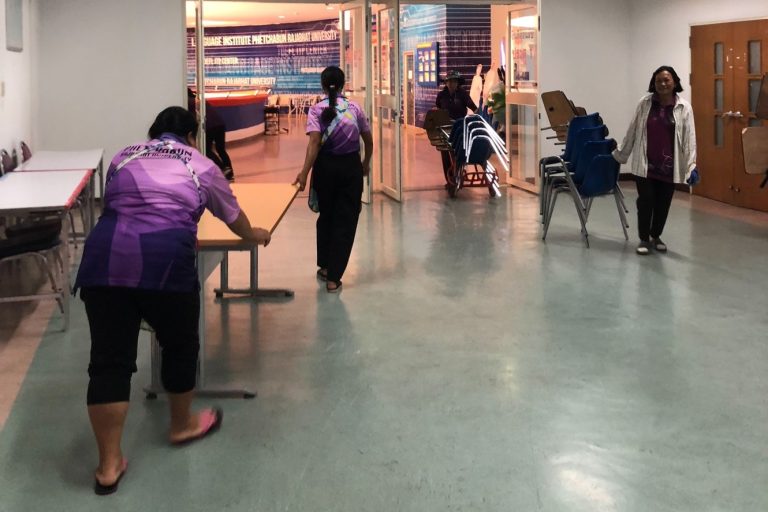 กิจกรรมประกอบด้วย การกวาดทำความสะอาดบริเวณถนนสายหลักภายในมหาวิทยาลัย และการจัดเตรียมโต๊ะ เก้าอี้ภายในห้องประชุม ชั้นที่ 4 อาคารปฏิบัติการทางภาษาและคอมพิวเตอร์ เพื่อรองรับการจัดประชุมที่กำหนดขึ้น