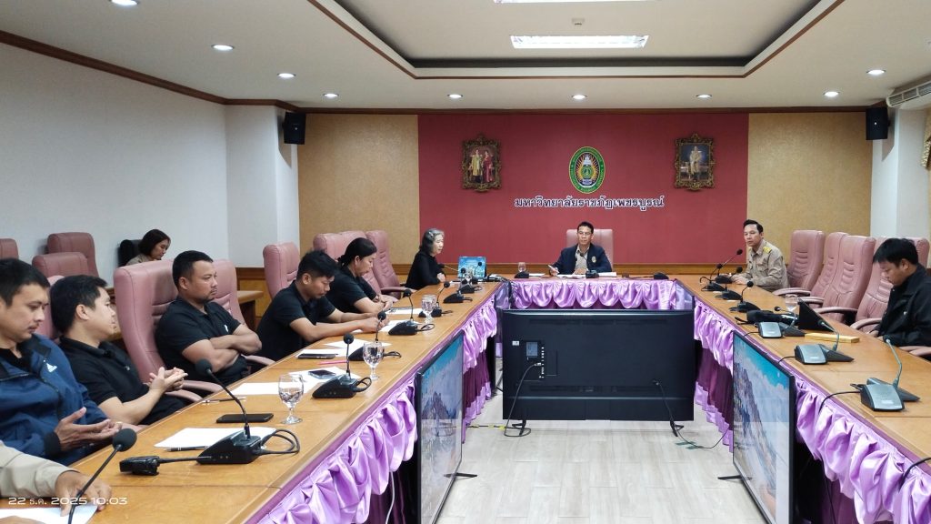 กองอาคารสถานที่ สำนักงานอธิการบดี มหาวิทยาลัยราชภัฏเพชรบูรณ์ ได้จัดประชุมคณะกรรมการบริหารงานกองอาคารสถานที่ (นัดพิเศษ) เมื่อวันจันทร์ที่ 22 ธันวาคม 2568 เวลา 09.30 น. ณ ห้องประชุมอินทผาลัม ชั้น 2 อาคารเฉลิมพระเกียรติฉลองสิริราชสมบัติครบ 60 ปี เพื่อหารือและกำหนดแนวทางการดำเนินงานด้านอาคารสถานที่ สาธารณูปโภค ยานพาหนะ ความปลอดภัย และสิ่งแวดล้อมของมหาวิทยาลัย